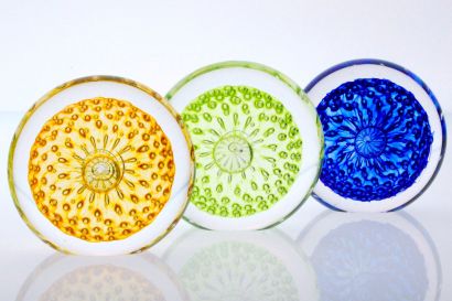 Shaped and softened by time and turning on the bed of water, river stones find their form. Some take shape like the Pebble Paperweight, wide and flat perfect for skipping, while others take the cobbled form of the Flow Stone best to be picked up, held, kept, and collected.  Each of these sculpted glass paperweights is crafted individually in the hot shop,  then ground and polished to stand upright.