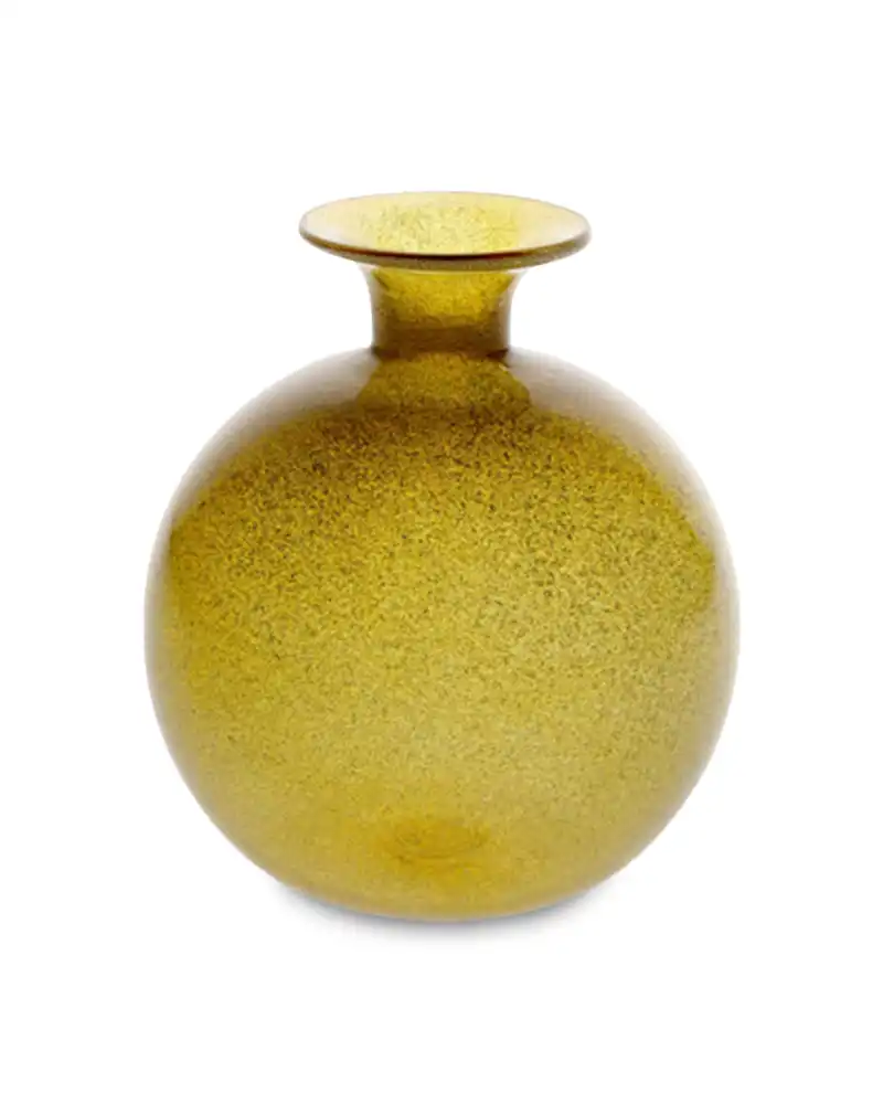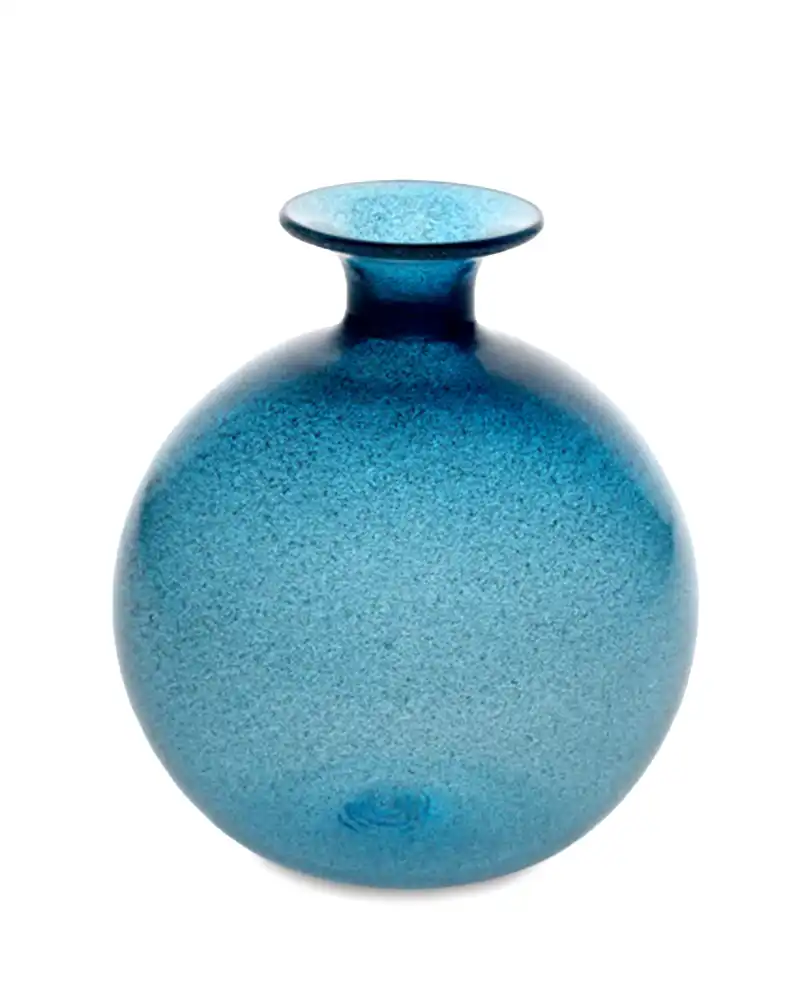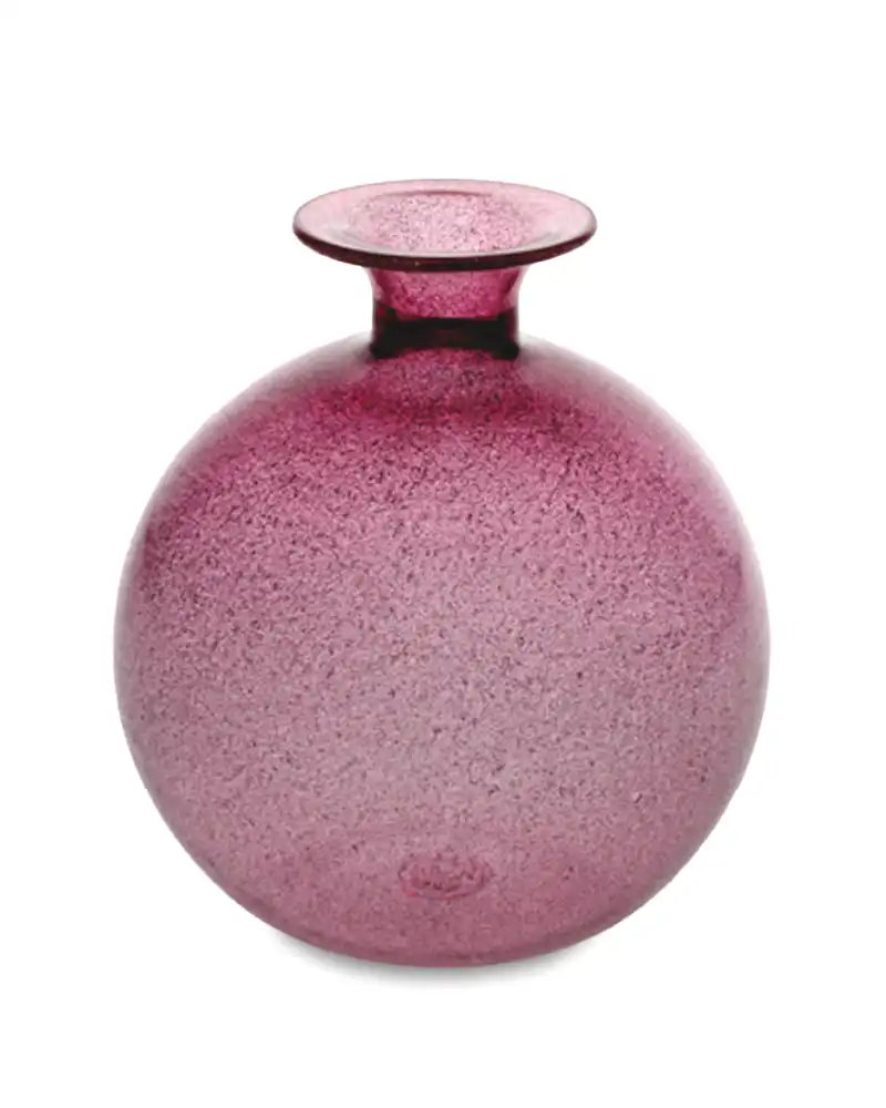 The perfect gift. This sweet handmade glass vase in jewel tones has a slight sparkle from the pixie dust added during its creation. Â Each vase is hot stamped with the Orbix logo.