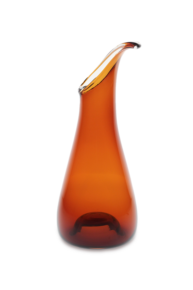 This sleek-designed carafe bears the signature domed-bottom that marks many of the first designs in the Orbix line. Pair this with a set of tumblers or wine goblets for a unique table or bar setting. Signed on bottom.