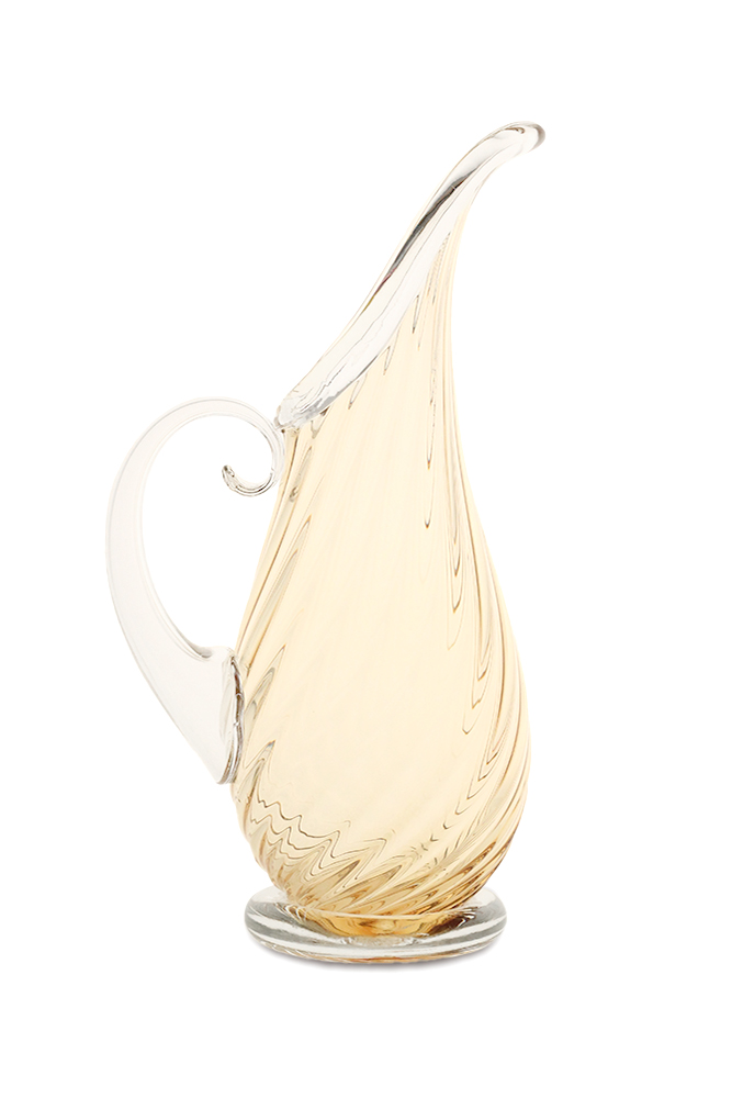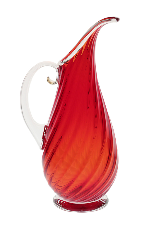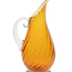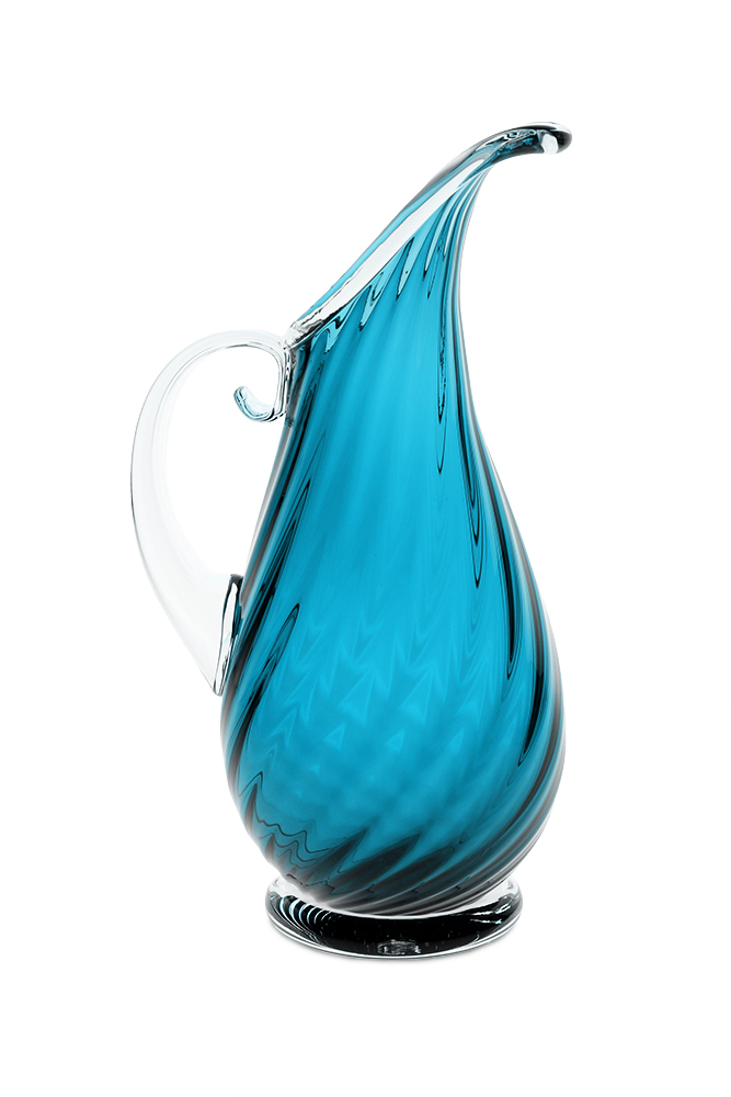 With its twisted ribs, clear foot and elongated full body, the Roxy Pitcher speaks elegance. Like all Orbix pitchers, the blown hollow handle gives a comfortable balance and lighter feel than most handmade pitchers. The Roxy Pitcher graced the pages of Oprah Wynfrey’s “O Magazine” in 2006. Hand wash in warm soapy water. Not intended for use with extremely hot liquids. Each pitcher is hot stamped with the Orbix logo.