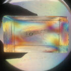 As a sculptor, an ever-expanding understanding of materials is critical in refining one’s ability to fluently translate ideas into expressive physical objects.  These solid works in glass capture a moment in time where a Prince Rupert drop while in a state of great tension is trapped in molten glass when the tail is snapped, and the tension released.  Due to the viscosity of the molten glass, the moment of this tension release is captured in time.  Once, the solid pieces are cooled, carved, and polished an unexpected beauty is revealed under the light of a polariscope which is a tool glass makers use to see stress in their glass wares.  The unique stresses captured in these pieces are all remarkably beautiful.  The surprise of beauty in tension revealed through creative experimentation and exploration is a main reason I love making art. Part of this whole process of discovery was captured with the genius camera and talents of Destin Sandlin of Smarter Every Day – a YouTube channel that is exploratory in nature. The whole video is available HERE.