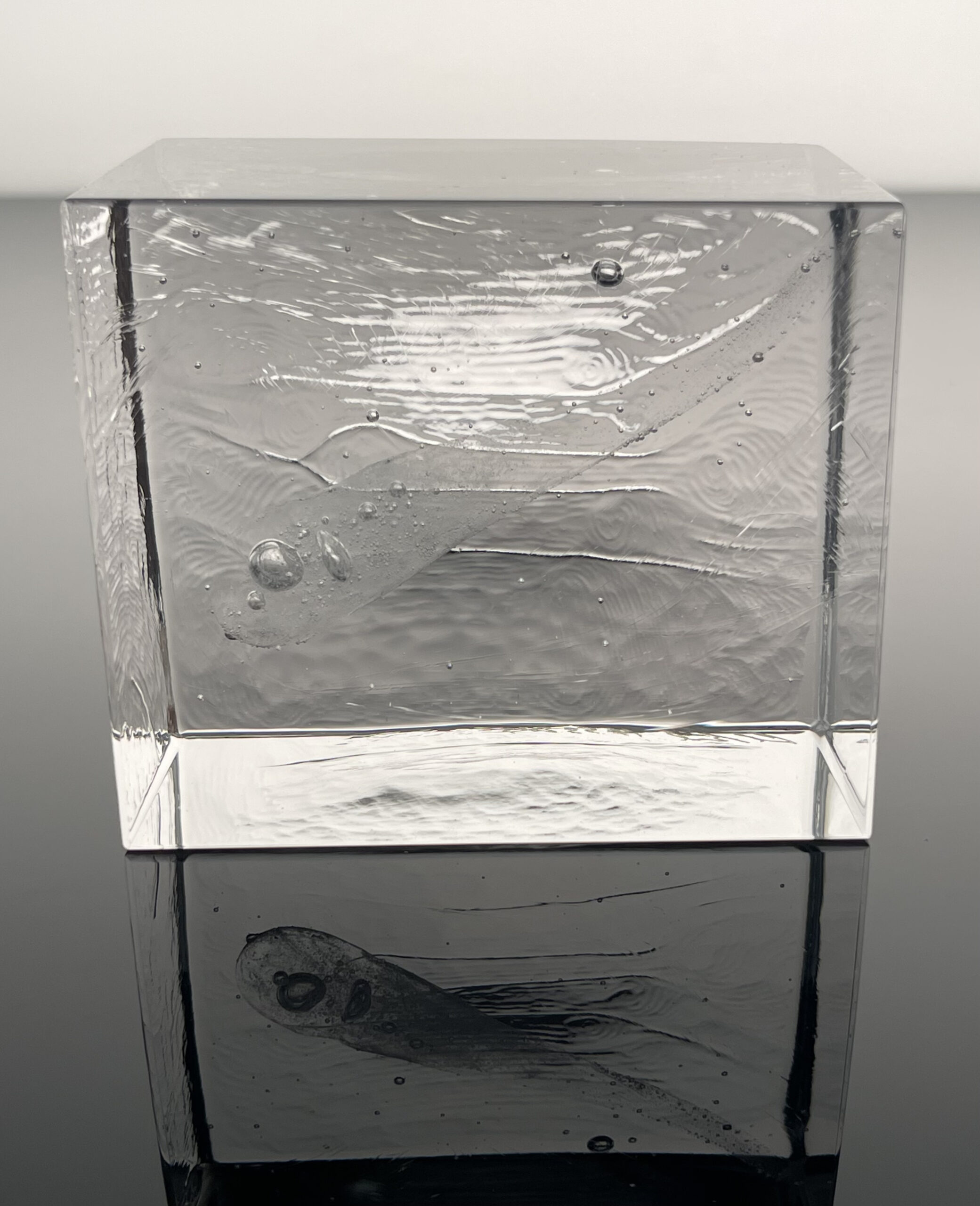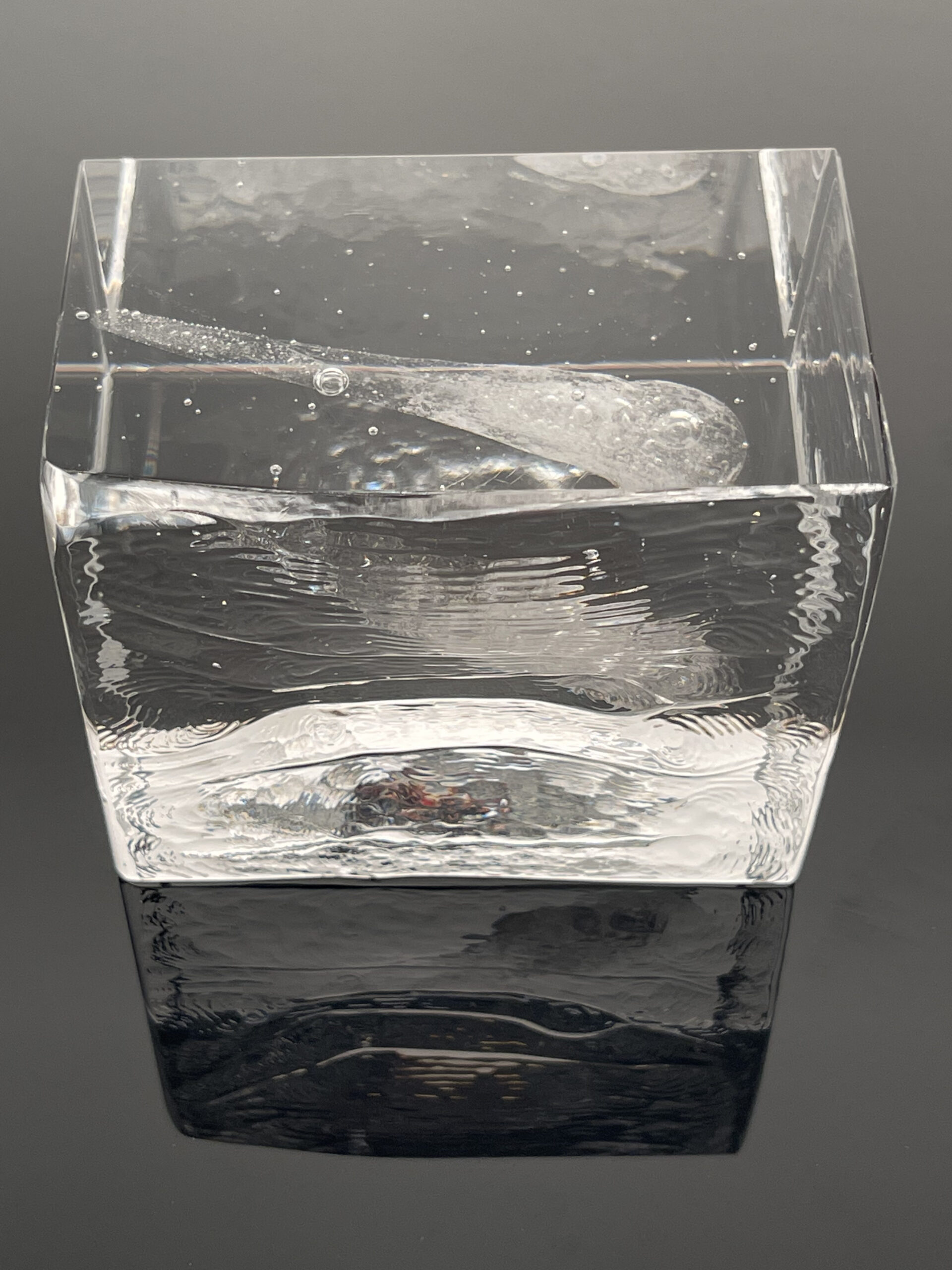 Number 53 is a horizontal arrangement with a clear veil of a PRD. On the backside, there are beautiful wavy skins left from the casting. On the interior, there are also clear striations visible from the pouring of the glass.