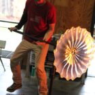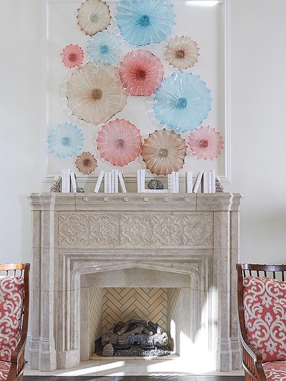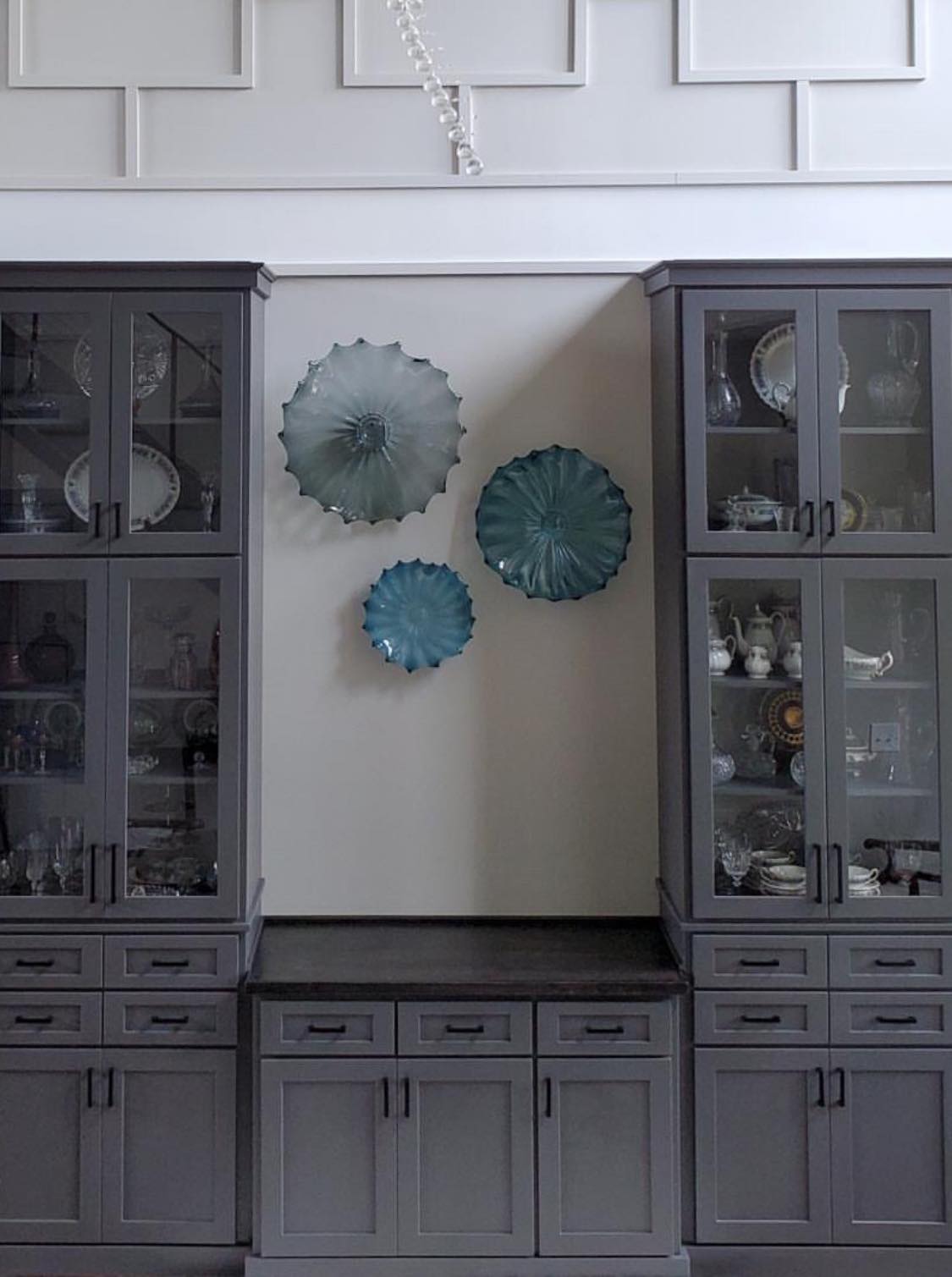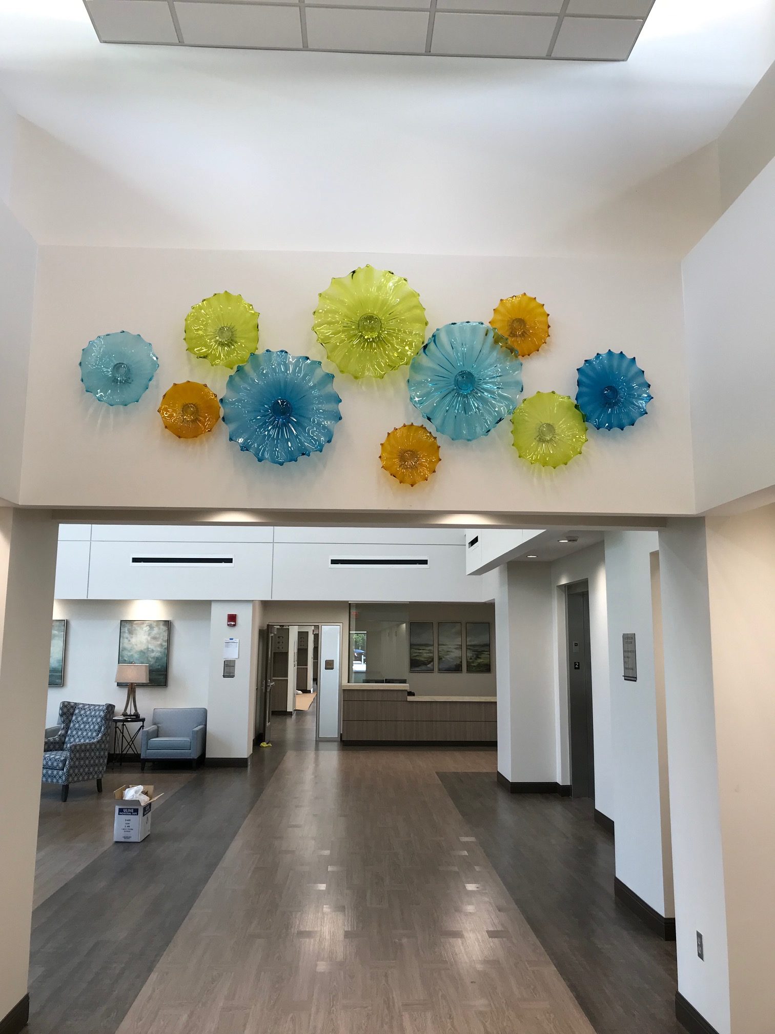 The Wall Flowers are made to order. We work with clients in their space to assemble a unique and stunning arrangement. Please call (256.523.3188) or email (info@orbixhotglass.com) for details. Each piece includes a custom fabricated metal plate to hang each of the flowers. The metal plate is primed and ready to accept your wall color paint. Flowers slide into the metal brackets for easy hanging and removal for cleaning.