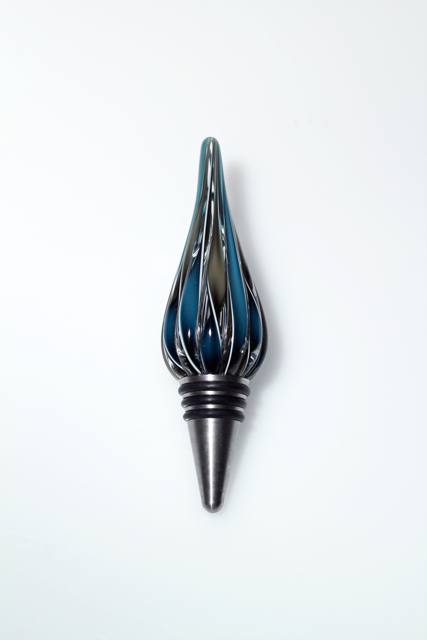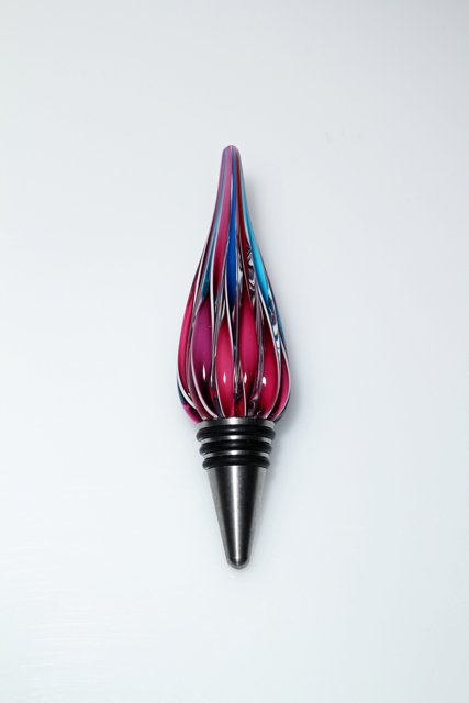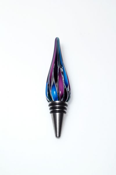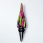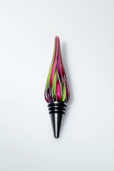 These fun glass cane wine stoppers are made from remnants of our popular candy canes. Â Each cane is twisted glass color encased in clear, then stretched, measured and cut, then reshaped at 2100 degrees into this elegant wine stopper. Top off your wine bottle with this conversation piece.